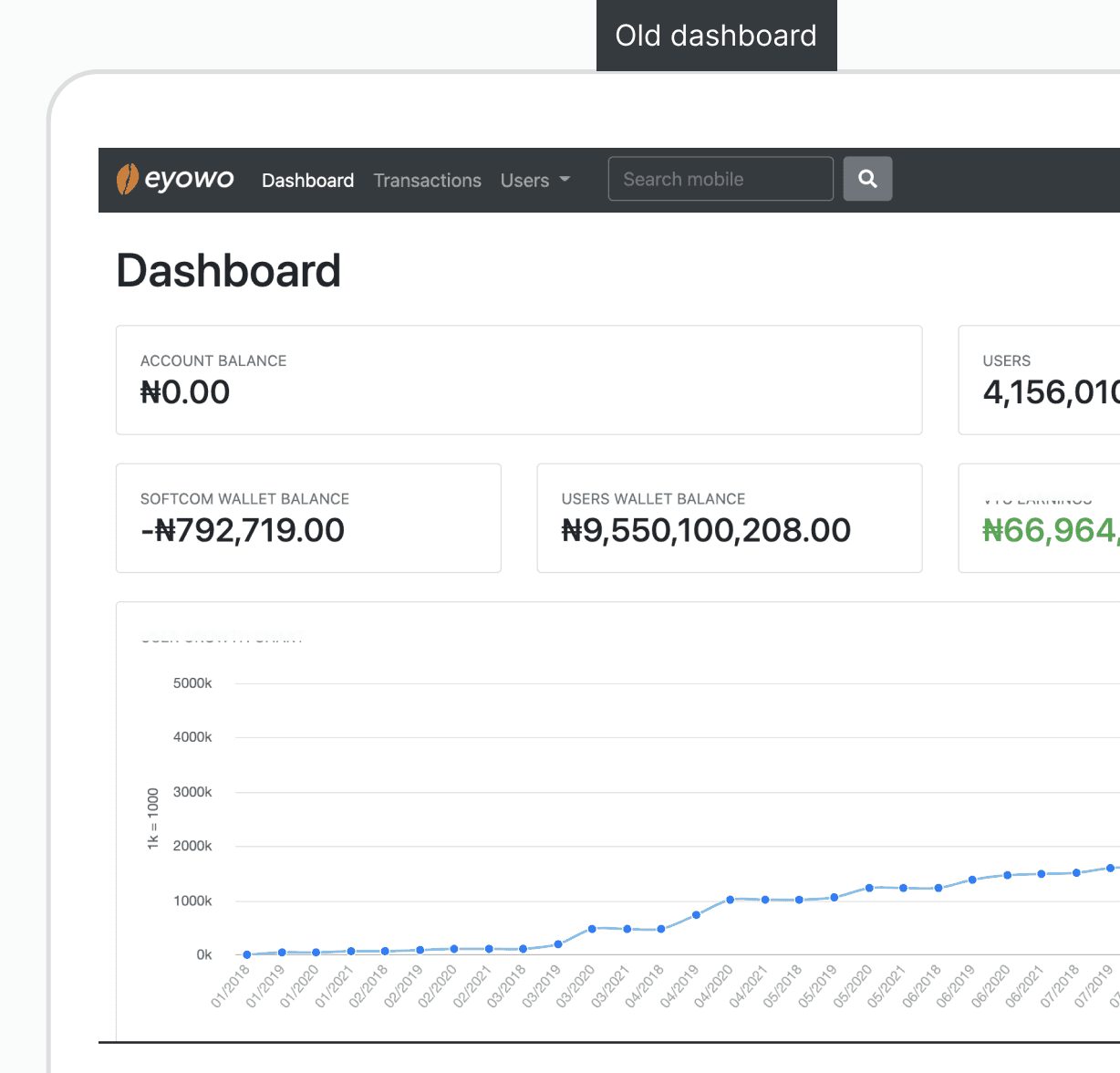 The old legacy admin dashboard hinders the Eyowo team's ability to make data-driven decisions and optimize workflows. Team members lack access to robust insights within the dashboard, forcing them to rely on external tools and other departments, leading to delays and reduced efficiency.